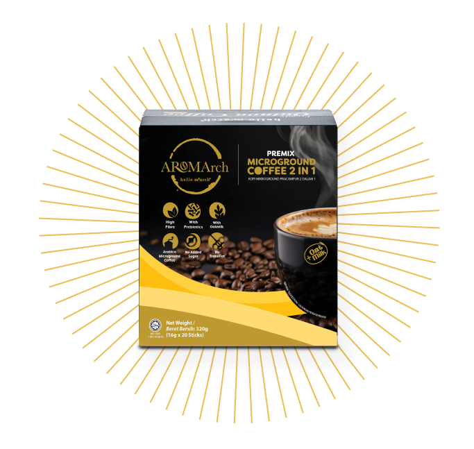 Hello M’arch’s AROMArch Oatmilk Microground Coffee Latte is more than just coffee – it’s functional well-being in every cup. With high fiber content and prebiotic inulin, it supports digestion, improves nutrient absorption, and strengthens the immune system. Made with authentic Arabic microground coffee and creamy oat milk for a plant-based treat. With no added sugar, no trans fats – it is a energy, health and taste in every sip.